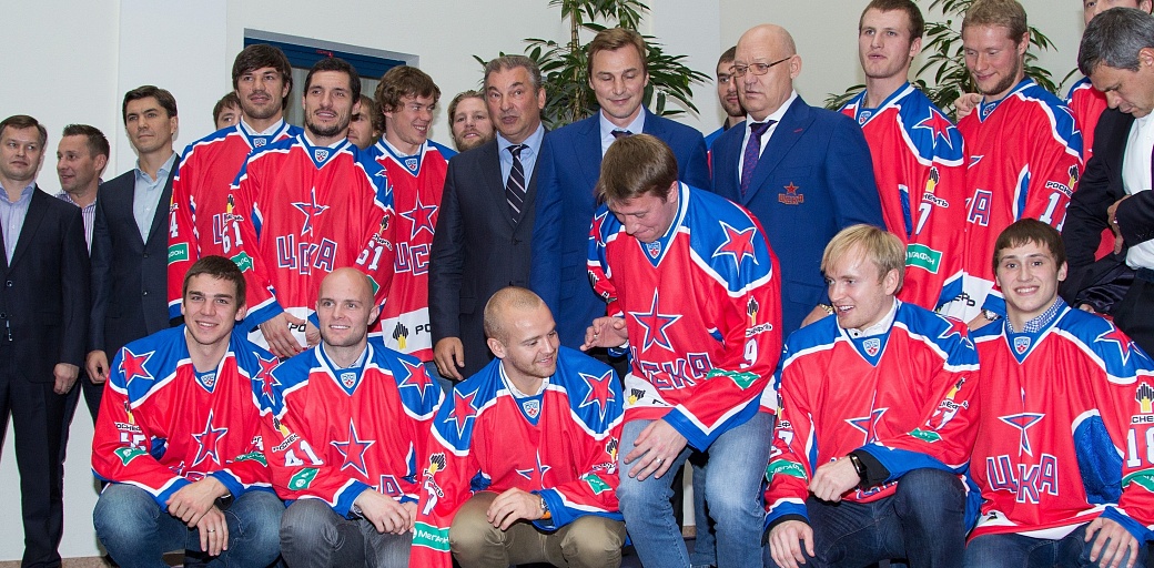 Официальная процедура вручения свитеров прошла в одном из лучших отелей столицы «Балчуг Кемпински». Пятнадцать новых армейцев получили именную форму с номерами из рук президента Федерации Хоккея России Владислава Третьяка и главного менеджера ЦСКА Сергея Федорова.