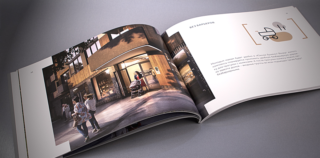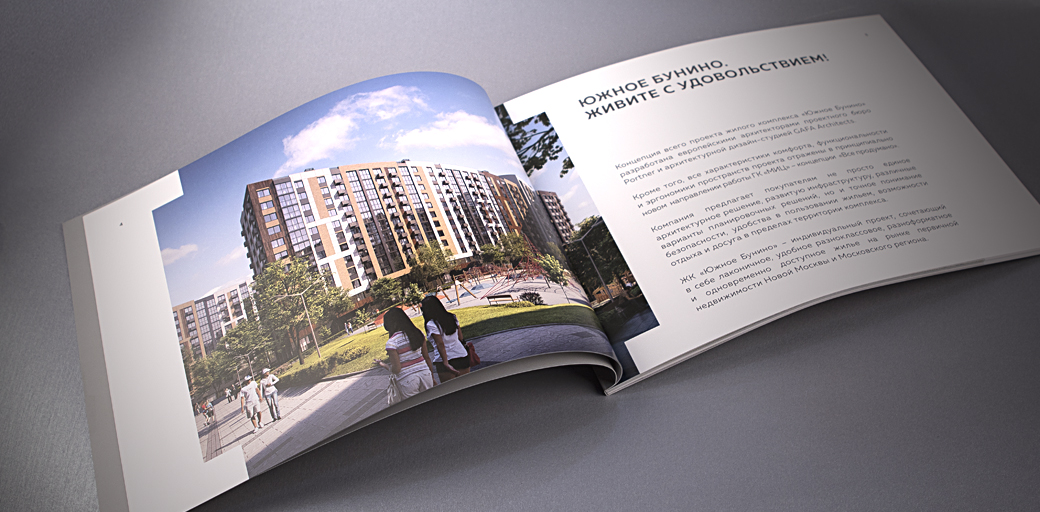 Брошюра рассказывает про новый проект группы компаний МИЦ, разработанный европейскими архитекторами и дизайнерами - Южное Бунино.
