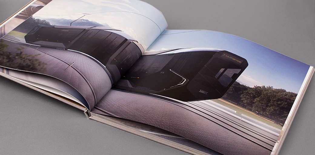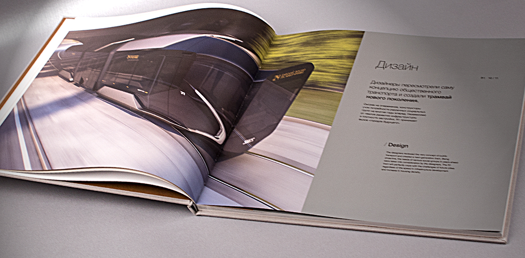 Альбом в твёрдом переплёте изготовленный для презентации нового инновационного трамвая R1.