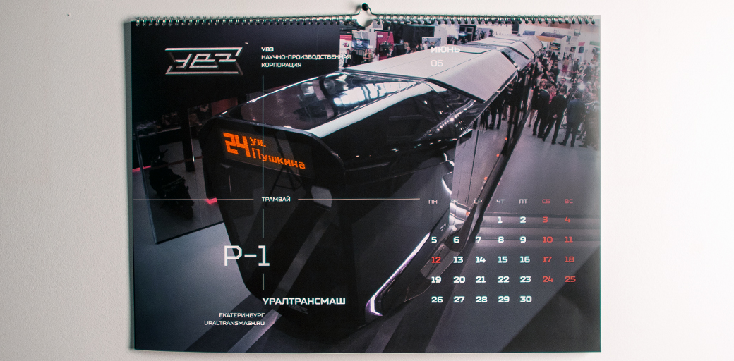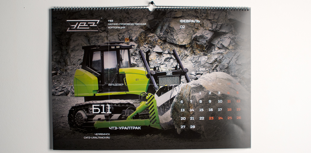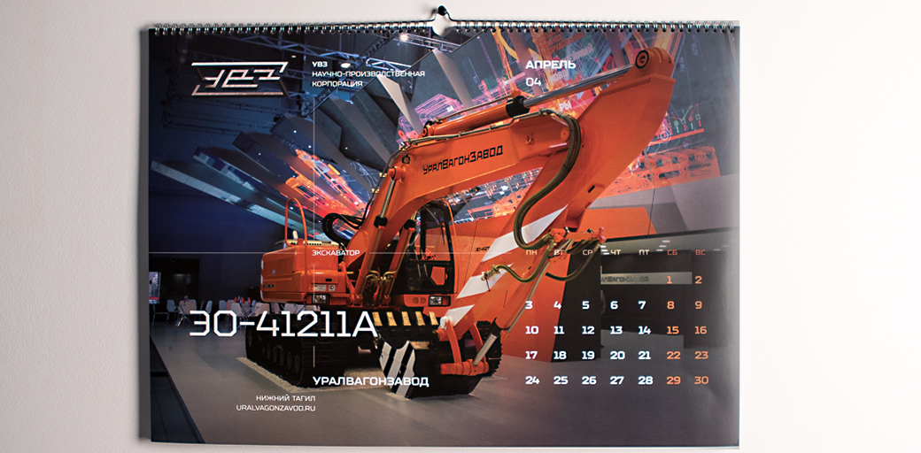 Календарь содержит в себе 12 фотоизображений продукции корпорации из всех отраслей – танки, вагоны, трамваи, бульдозеры, экскаваторы и спецтехника.